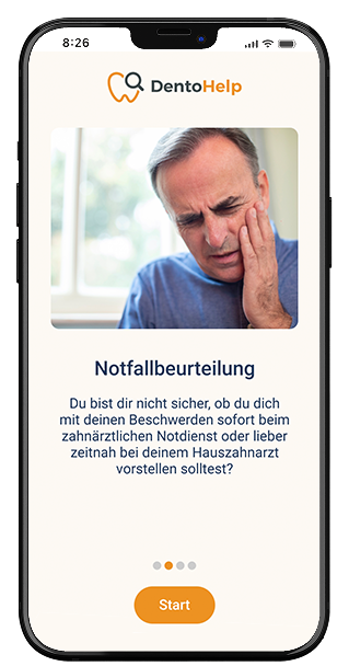Über DentoHelp kannst du in wenigen Schritten unsere Partner-Zahnärzt:innen online konsultieren. Meistens erhältst du innerhalb von 24 Stunden eine fachzahnärztliche Ersteinschätzung und Handlungsempfehlung zu deiner Frage