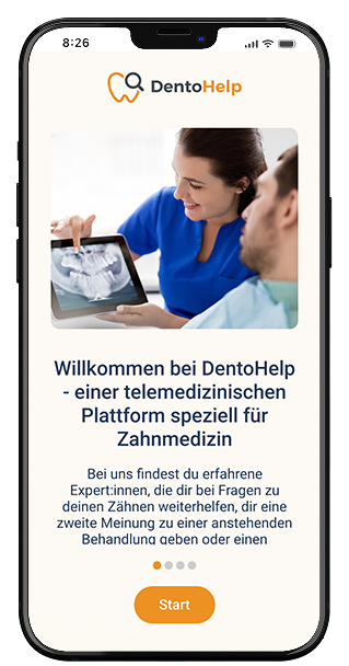 Bei DentoHelp erhältst du online eine zahnärztliche Einschätzung – von echten Zahnärzt:innen. Schnell. Diskret. Unabhängig.